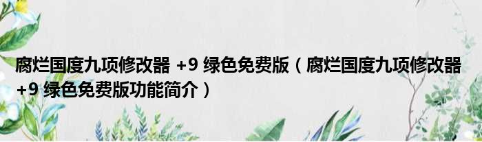 导读 大家好,关于腐烂国度九项修改器 +9 绿色免费版,腐烂国度九项修改器 +9 绿色免费版功能简介这个很多人还不知道,小勒来为大家解答以上的