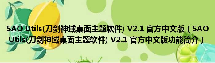 SAO Utils(刀剑神域桌面主题软件) V2.1 官方中文版(SAO Utils(刀剑神域桌面主题软件) V2.1 官方中文版功能简介)