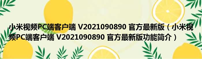 小米视频PC端客户端 V2021090890 官方最新版(小米视频PC端客户端 V2021090890 官方最新版功能简介)