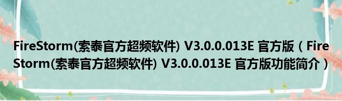 FireStorm(索泰官方超频软件) V3.0.0.013E 官方版(FireStorm(索泰官方超频软件) V3.0.0.013E 官方版功能简介)