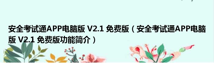 安全考试通APP电脑版 V2.1 免费版(安全考试通APP电脑版 V2.1 免费版功能简介)