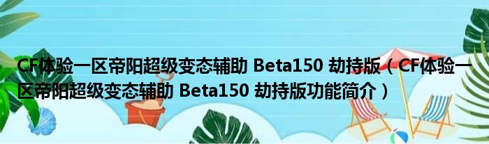 导读 大家好,关于CF体验一区帝阳超级变态辅助 Beta150 劫持版,CF体验一区帝阳超级变态辅助 Beta150 劫持版功能简介这个很多人还不知道,小勒