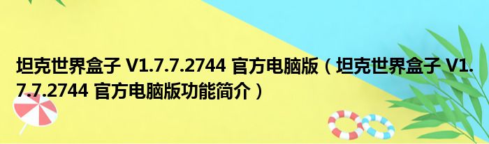 导读 大家好,关于坦克世界盒子 V1 7 7 2744 官方电脑版,坦克世界盒子 V1 7 7 2744 官方电脑版功能简介这个很多人还不知道,小勒来为大家解答