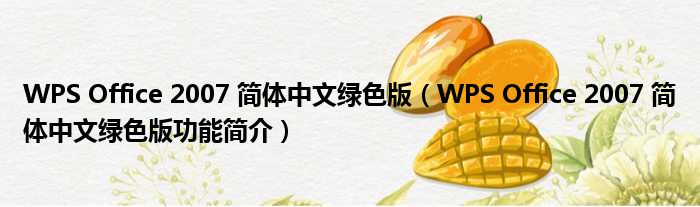WPS Office 2007 简体中文绿色版(WPS Office 2007 简体中文绿色版功能简介)