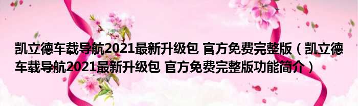 凯立德车载导航2021最新升级包 官方免费完整版(凯立德车载导航2021最新升级包 官方免费完整版功能简介)