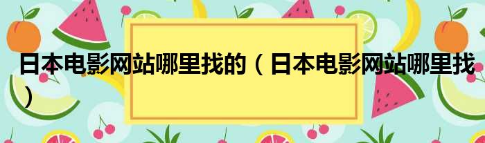 导读 大家好,今天小六子来为大家解答以下的问题,关于日本电影网站哪里找的,日本电影网站哪里找这个很多人还不知道,现在让我们一起来看看吧!1