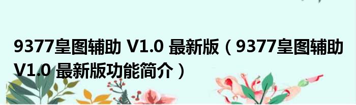 9377皇图辅助 V1.0 最新版(9377皇图辅助 V1.0 最新版功能简介)