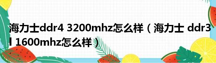 海力士ddr4 3200mhz怎么样(海力士 ddr3l 1600mhz怎么样)