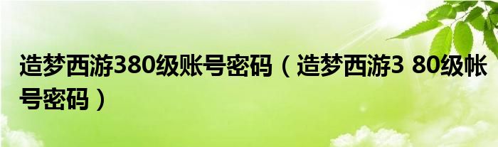 导读 大家好,今天小六子来为大家解答以下的问题,关于造梦西游380级账号密码,造梦西游3 80级帐号密码这个很多人还不知道,现在让我们一起来看