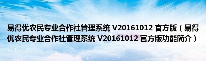 易得优农民专业合作社管理系统 V20161012 官方版(易得优农民专业合作社管理系统 V20161012 官方版功能简介)