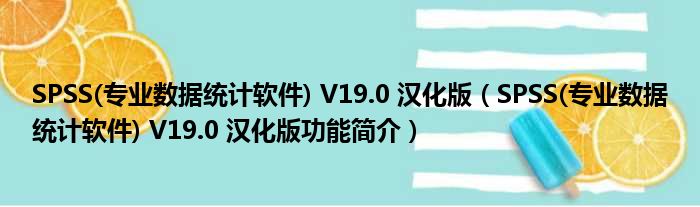SPSS(专业数据统计软件) V19.0 汉化版(SPSS(专业数据统计软件) V19.0 汉化版功能简介)