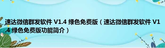 导读 大家好,关于速达微信群发软件 V1 4 绿色免费版,速达微信群发软件 V1 4 绿色免费版功能简介这个很多人还不知道,小勒来为大家解答以上的