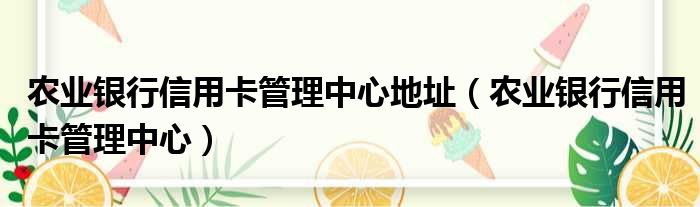 农业银行信用卡管理中心地址(农业银行信用卡管理中心)