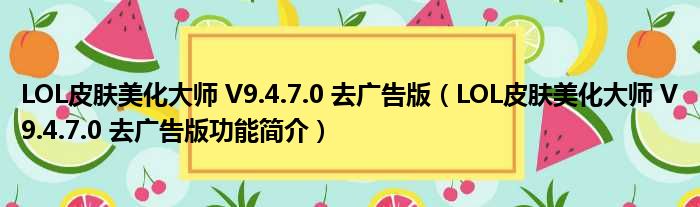 LOL皮肤美化大师 V9.4.7.0 去广告版(LOL皮肤美化大师 V9.4.7.0 去广告版功能简介)