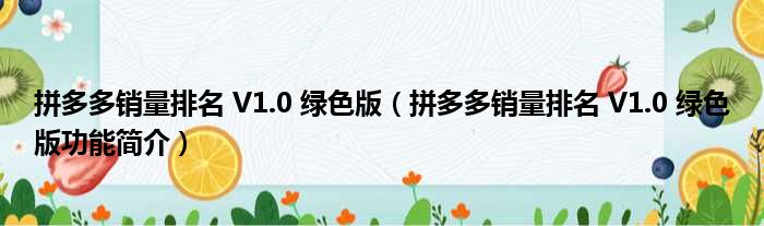 拼多多销量排名 V1.0 绿色版(拼多多销量排名 V1.0 绿色版功能简介)