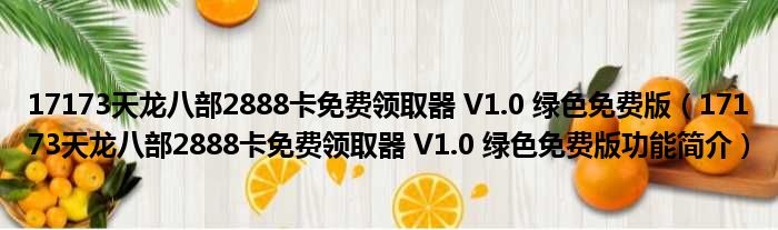 17173天龙八部2888卡免费领取器 V1.0 绿色免费版(17173天龙八部2888卡免费领取器 V1.0 绿色免费版功能简介)