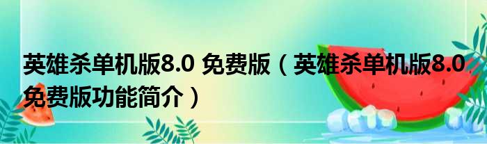 英雄杀单机版8.0 免费版(英雄杀单机版8.0 免费版功能简介)