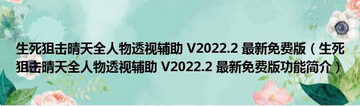 导读 大家好,关于生死狙击晴天全人物透视辅助 V2022 2 最新免费版,生死狙击晴天全人物透视辅助 V2022 2 最新免费版功能简介这个很多人还不