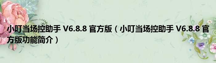 导读 大家好,关于小叮当场控助手 V6 8 8 官方版,小叮当场控助手 V6 8 8 官方版功能简介这个很多人还不知道,小勒来为大家解答以上的问题,现