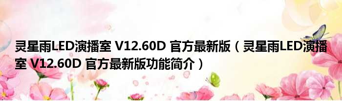 灵星雨LED演播室 V12.60D 官方最新版(灵星雨LED演播室 V12.60D 官方最新版功能简介)