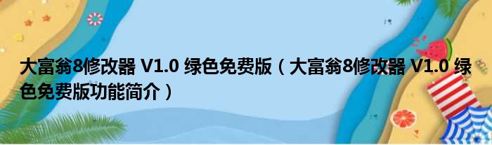 导读 大家好,关于大富翁8修改器 V1 0 绿色免费版,大富翁8修改器 V1 0 绿色免费版功能简介这个很多人还不知道,小勒来为大家解答以上的问题,