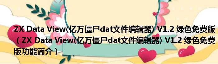 ZX Data View(亿万僵尸dat文件编辑器) V1.2 绿色免费版(ZX Data View(亿万僵尸dat文件编辑器) V1.2 绿色免费版功能简介)