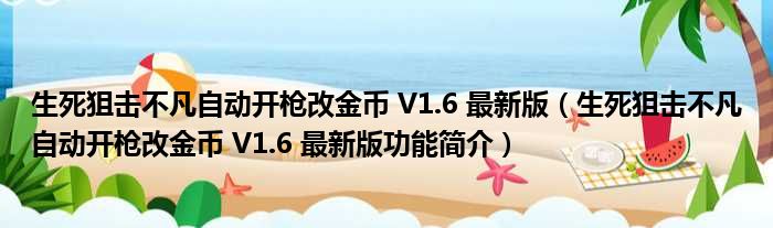 生死狙击不凡自动开枪改金币 V1.6 最新版(生死狙击不凡自动开枪改金币 V1.6 最新版功能简介)