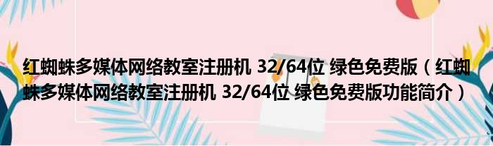 红蜘蛛多媒体网络教室注册机 32/64位 绿色免费版(红蜘蛛多媒体网络教室注册机 32/64位 绿色免费版功能简介)