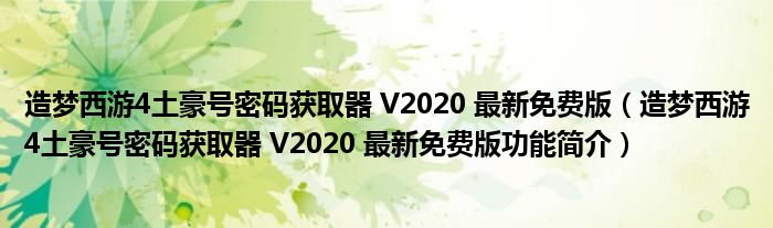 造梦西游4土豪号密码获取器 V2020 最新免费版(造梦西游4土豪号密码获取器 V2020 最新免费版功能简介)