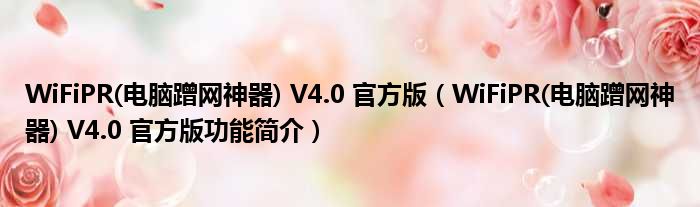 WiFiPR(电脑蹭网神器) V4.0 官方版(WiFiPR(电脑蹭网神器) V4.0 官方版功能简介)