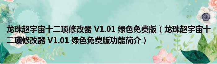 导读 大家好,关于龙珠超宇宙十二项修改器 V1 01 绿色免费版,龙珠超宇宙十二项修改器 V1 01 绿色免费版功能简介这个很多人还不知道,小勒来为