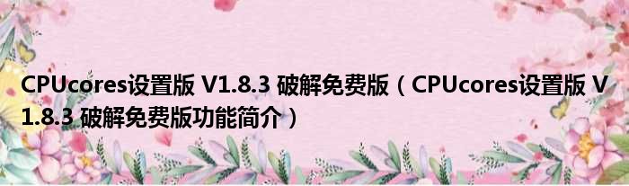 CPUcores设置版 V1.8.3 破解免费版(CPUcores设置版 V1.8.3 破解免费版功能简介)