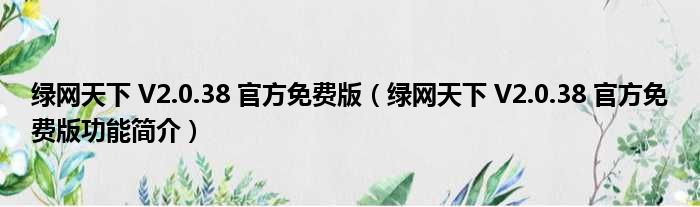 绿网天下 V2.0.38 官方免费版(绿网天下 V2.0.38 官方免费版功能简介)