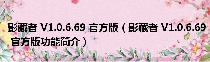 导读 大家好,关于影藏者 V1 0 6 69 官方版,影藏者 V1 0 6 69 官方版功能简介这个很多人还不知道,小勒来为大家解答以上的问题,现在让我们一