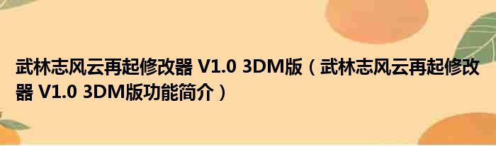 武林志风云再起修改器 V1.0 3DM版(武林志风云再起修改器 V1.0 3DM版功能简介)