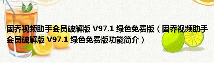 固乔视频助手会员破解版 V97.1 绿色免费版(固乔视频助手会员破解版 V97.1 绿色免费版功能简介)