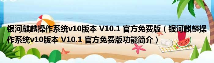 银河麒麟操作系统v10版本 V10.1 官方免费版(银河麒麟操作系统v10版本 V10.1 官方免费版功能简介)