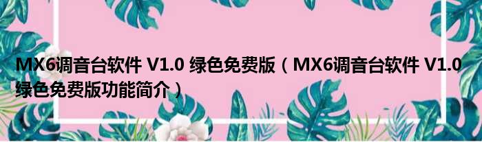 MX6调音台软件 V1.0 绿色免费版(MX6调音台软件 V1.0 绿色免费版功能简介)