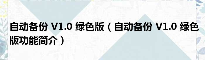 自动备份 V1.0 绿色版(自动备份 V1.0 绿色版功能简介)