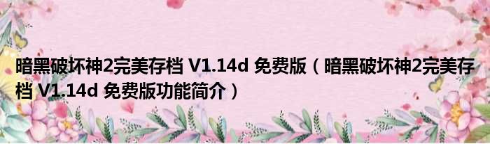 导读 大家好,关于暗黑破坏神2完美存档 V1 14d 免费版,暗黑破坏神2完美存档 V1 14d 免费版功能简介这个很多人还不知道,小勒来为大家解答以上