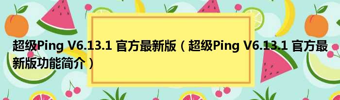 导读 大家好,关于超级Ping V6 13 1 官方最新版,超级Ping V6 13 1 官方最新版功能简介这个很多人还不知道,小勒来为大家解答以上的问题,现在