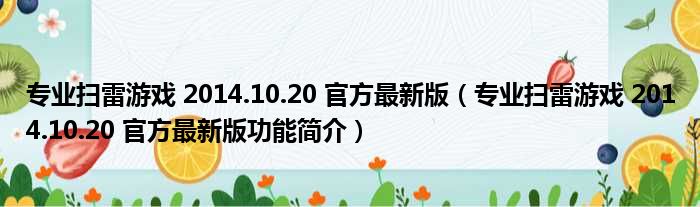 专业扫雷游戏 2014.10.20 官方最新版(专业扫雷游戏 2014.10.20 官方最新版功能简介)