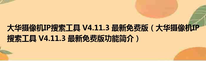 导读 大家好,关于大华摄像机IP搜索工具 V4 11 3 最新免费版,大华摄像机IP搜索工具 V4 11 3 最新免费版功能简介这个很多人还不知道,小勒来为