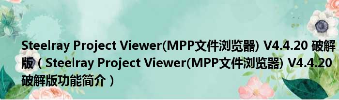 导读 大家好,关于Steelray Project Viewer(MPP文件浏览器) V4 4 20 破解版,Steelray Project Viewer(MPP文件浏览器) V4 4 20 破解版功