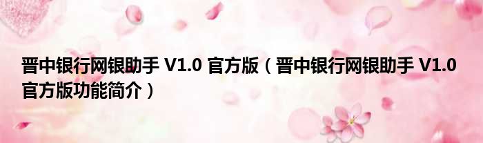 晋中银行网银助手 V1.0 官方版(晋中银行网银助手 V1.0 官方版功能简介)