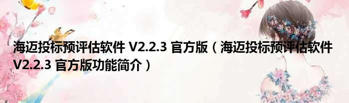 海迈投标预评估软件 V2.2.3 官方版(海迈投标预评估软件 V2.2.3 官方版功能简介)