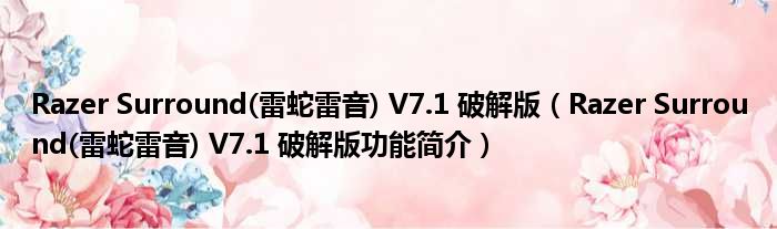 导读 大家好,关于Razer Surround(雷蛇雷音) V7 1 破解版,Razer Surround(雷蛇雷音) V7 1 破解版功能简介这个很多人还不知道,小勒来为大家