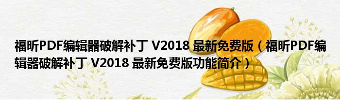 导读 大家好,关于福昕PDF编辑器破解补丁 V2018 最新免费版,福昕PDF编辑器破解补丁 V2018 最新免费版功能简介这个很多人还不知道,小勒来为大