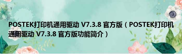 导读 大家好,关于POSTEK打印机通用驱动 V7 3 8 官方版,POSTEK打印机通用驱动 V7 3 8 官方版功能简介这个很多人还不知道,小勒来为大家解答以
