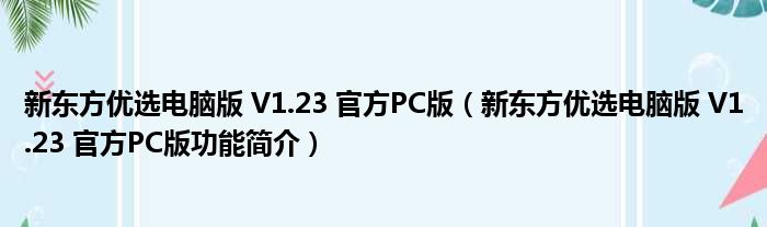 新东方优选电脑版 V1.23 官方PC版(新东方优选电脑版 V1.23 官方PC版功能简介)